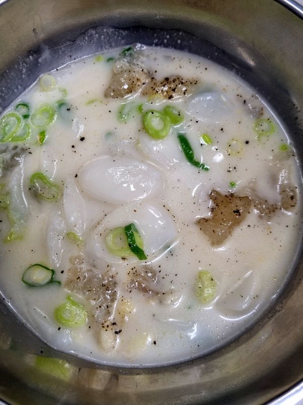 어제보담~ 덜 추븐느낌요~ 적응이 무섭죠ㅋ 그래도 뜨끈한 국물이 좋은건 한국인이라믄 우짤수 엄쬬~~^^ 뽀야니 찐한 국물에 쫄깃떡국~이라니 딱인데요~~ 국물이가 사랑스런 계절인듯요^^