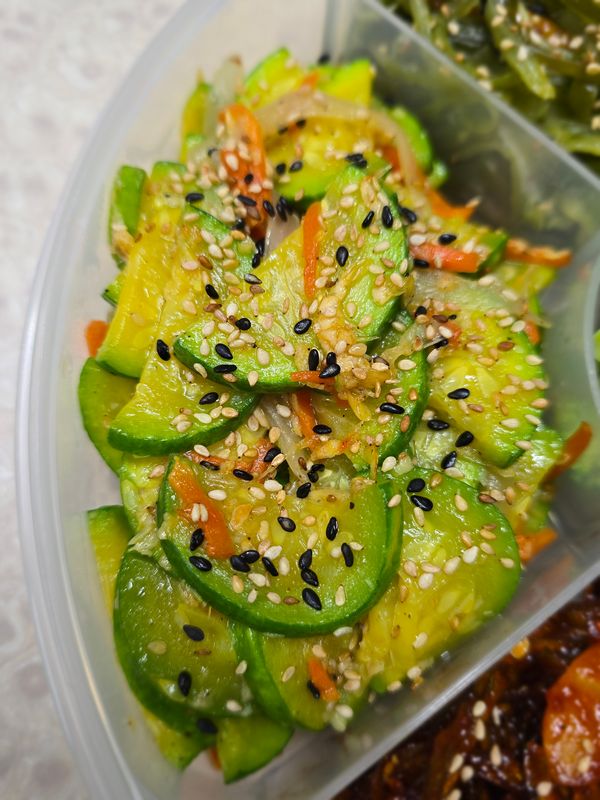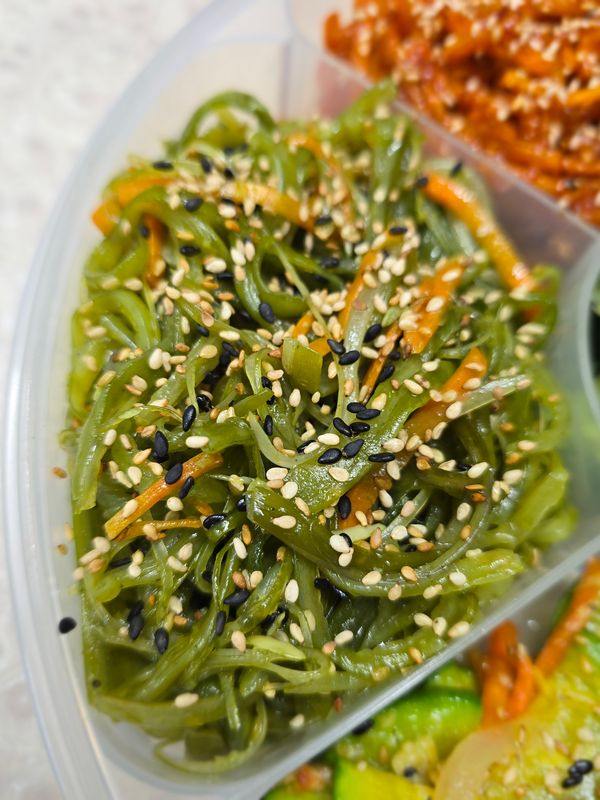 오이 들깨가루넣은볶음, 미역줄기볶음, 브로콜리도