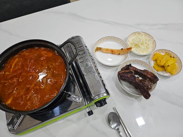 주말 저녁 12시에 퇴근하셔서.. 또 등갈비 구어 남펴니 식사차려드리고 참치찌개 끌이고