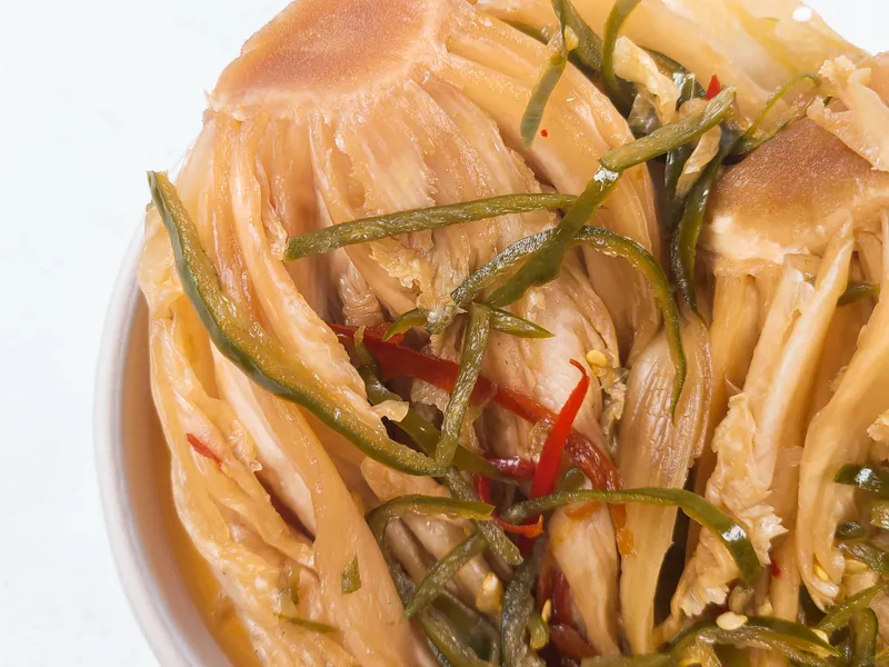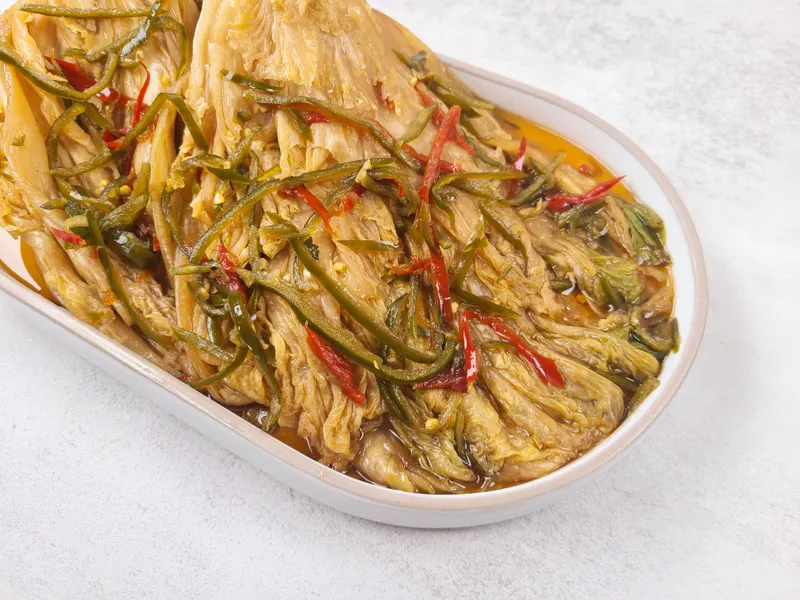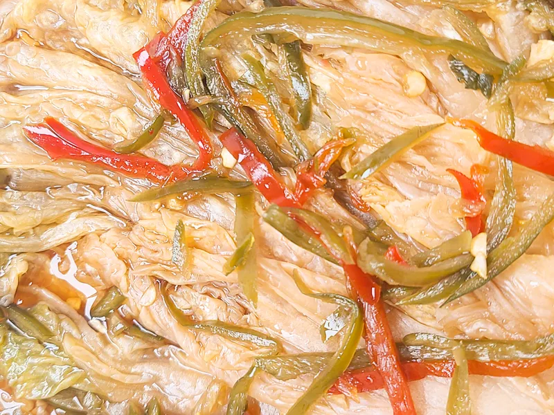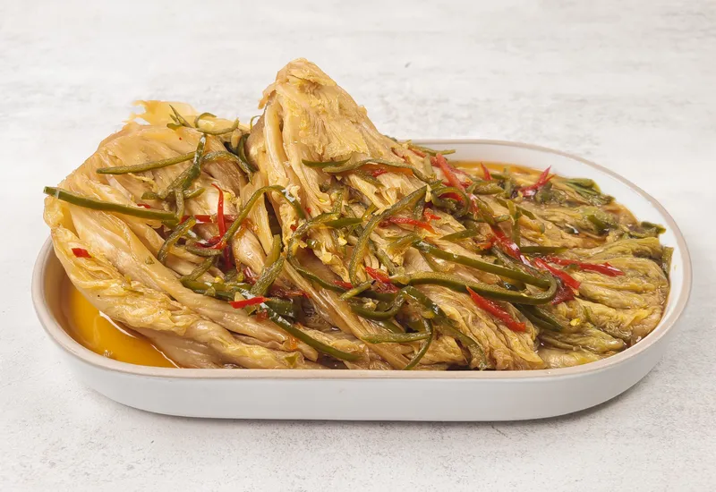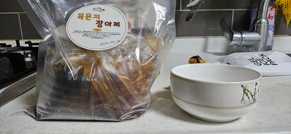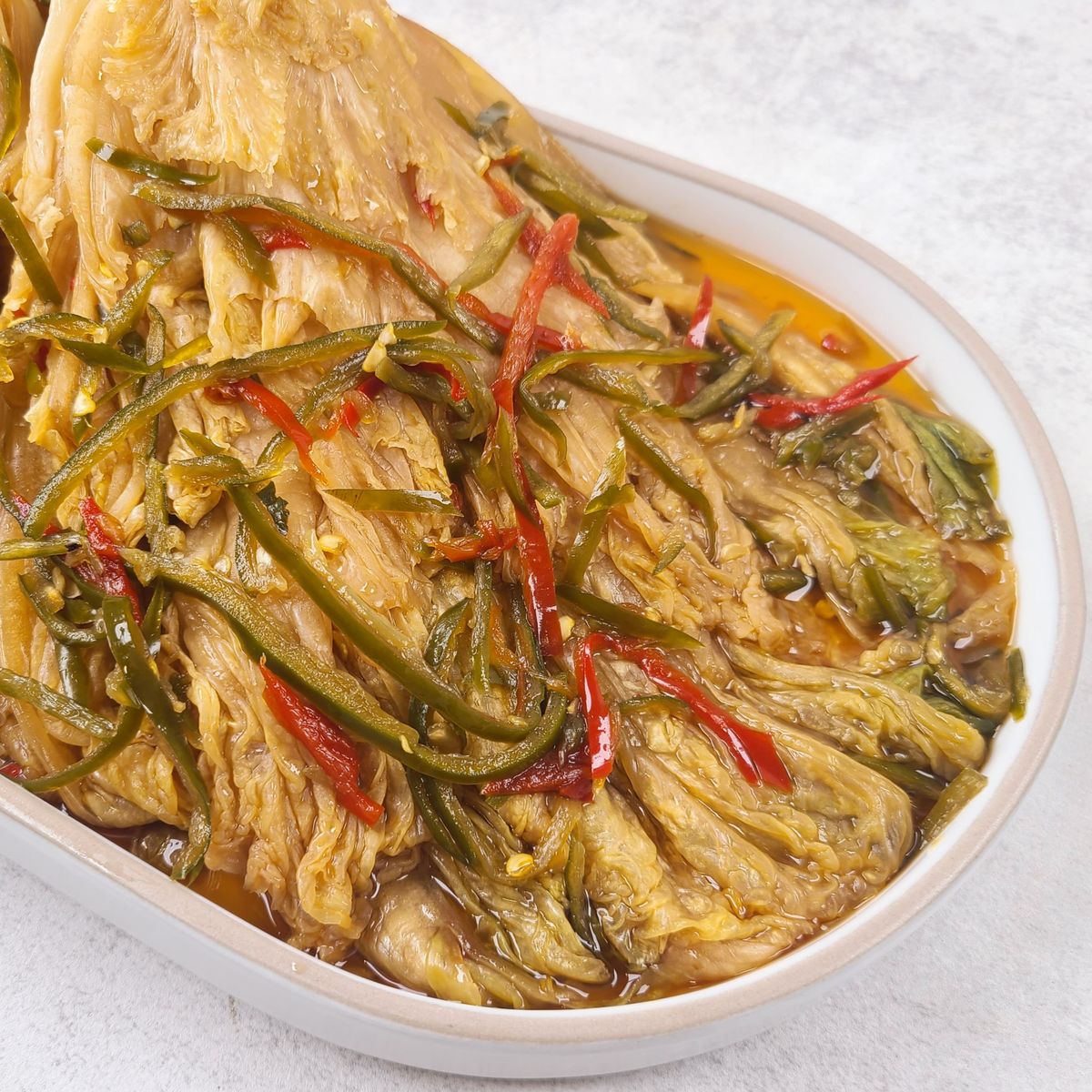 아삭아삭 식감 살아있는 묵은지장아찌입니디. 시큼하게 입맛 도는 맛으로 입안을 깔끔하게 만들어 줘요. 적당히 짭조름해 뜨거운 밥에 싸서 드시면 밥 한 공기 뚝딱이랍니다.