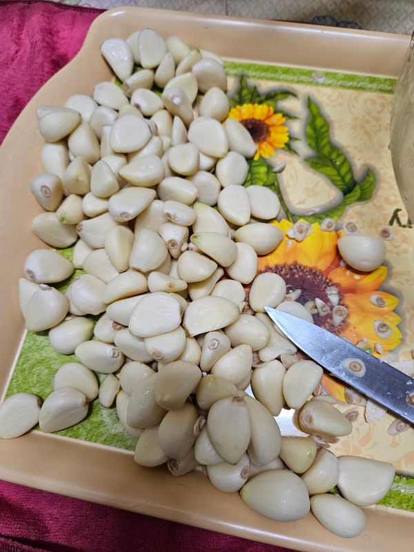 옵션: 덜 매운 깐마늘 1kg / 중 사이즈