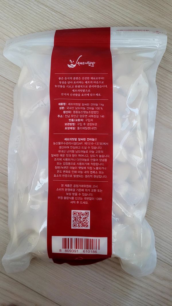 옵션: 덜 매운 깐마늘 1kg / 대 사이즈