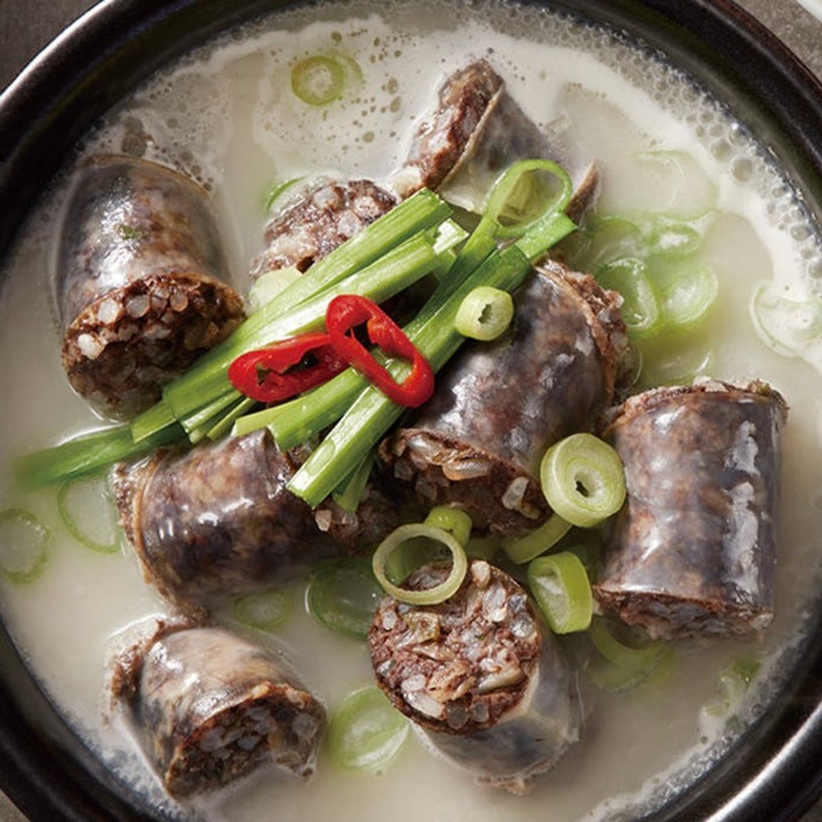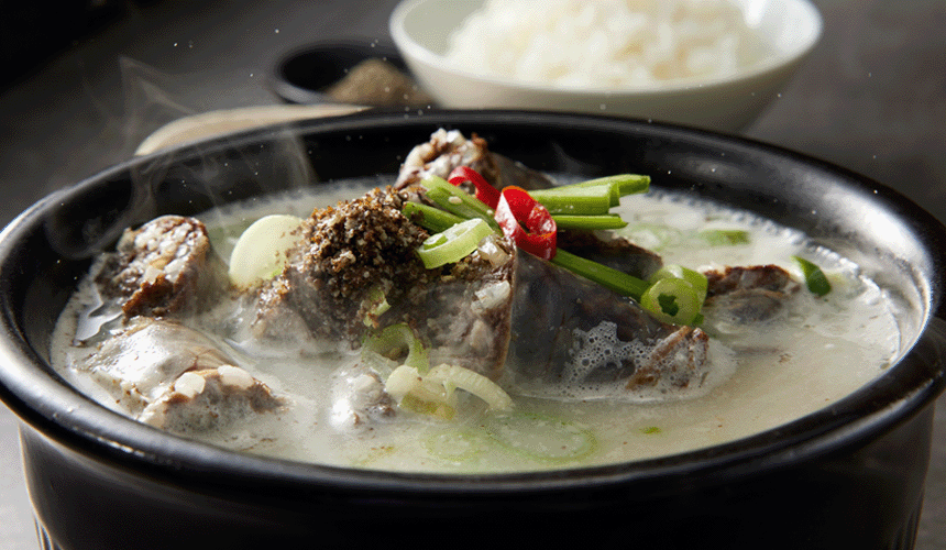 감칠맛 나는 사골육수로 우려낸 진한 국물