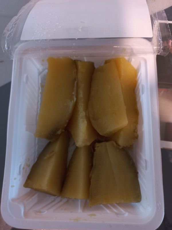 냉동실에 넣어뒀더니 언 상태는 너무 단단해서 먹을 수가 없고, 조금 녹기 기다리다가 다 녹아버렸어요 ㅜ ㅜ 그래도 맛있습니다만. 우유 넣고 갈아먹으면 맛있는 고구마라때가 돼요.