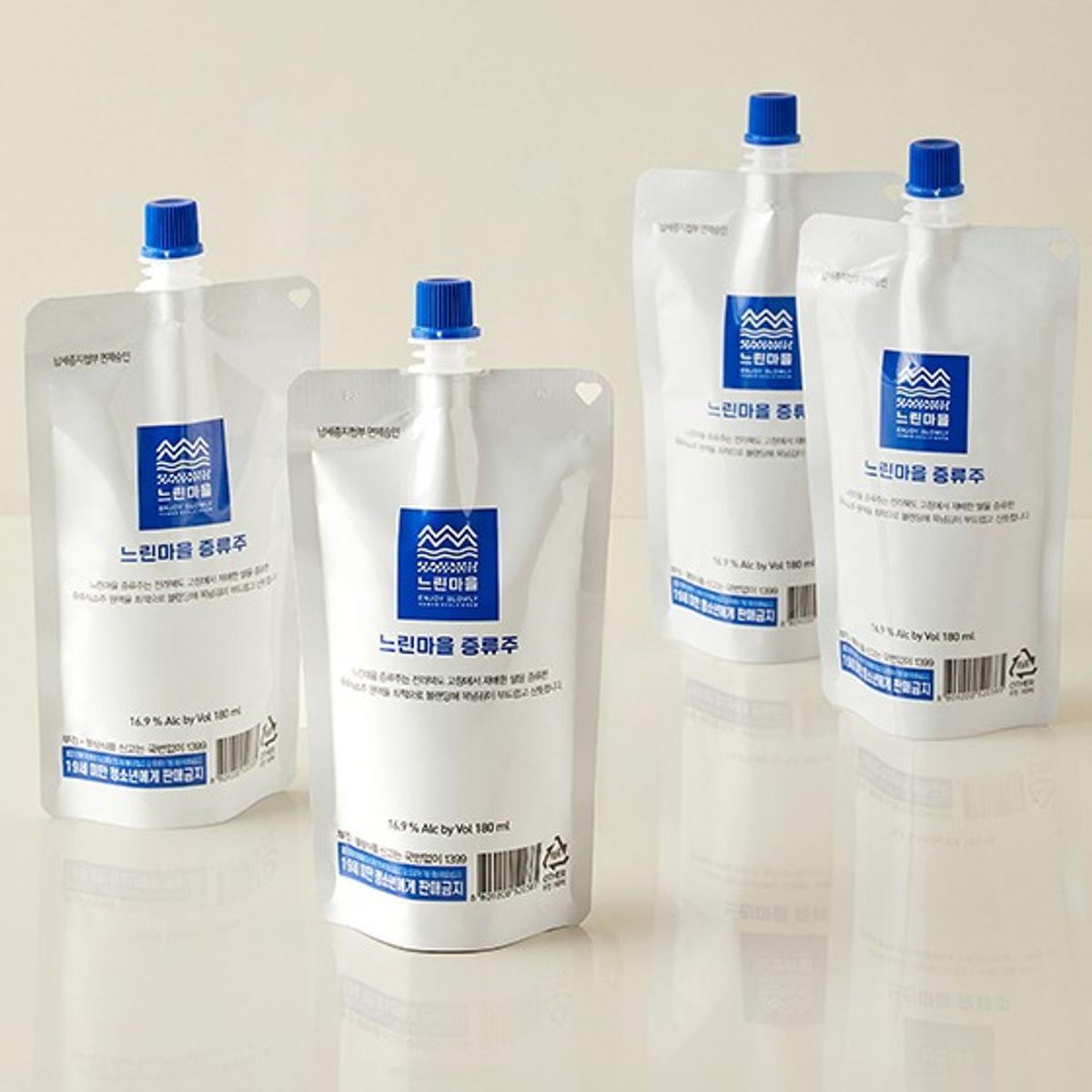간편하게 즐기는 깔끔한 맛의 느린마을증류주 파우치 180ml 4입