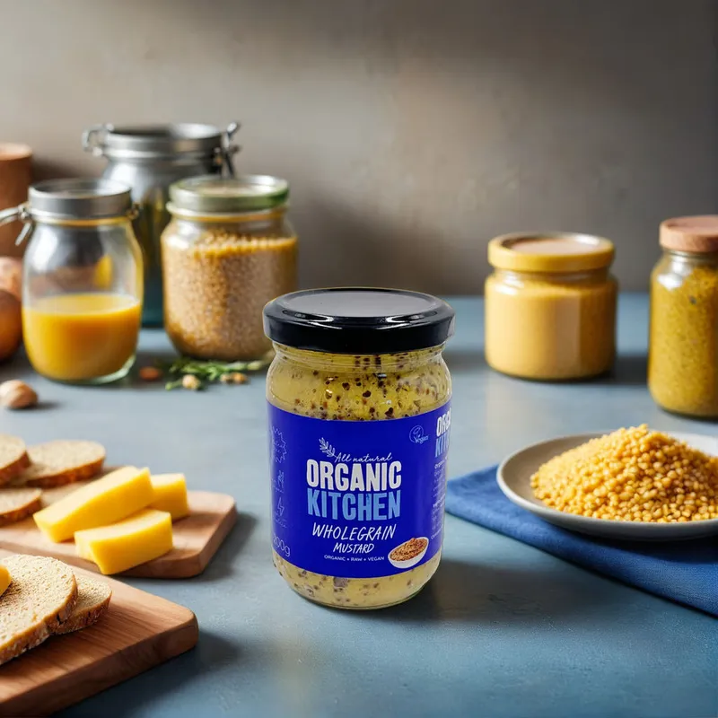 오가닉 키친은 영국 브랜드로, 건강 및 천연식품을 영국 소매업체에 공급하고 있습니다. 최고의 유기농 재료만을 엄선하며, 지구와 소비자의 더 나은 내일을 위해 노력합니다. 농약, 첨가물, 방부제를 최소화하고, 유전자 변형 성분을 배제함을 적극 장려합니다. 오가닉 키친 제품은 영국 내 천연 제품 전문점에서만 만나볼 수 있습니다. 원재료인 겨자씨의 경우, 프랑스산을 주로 활용하여 생산합니다.