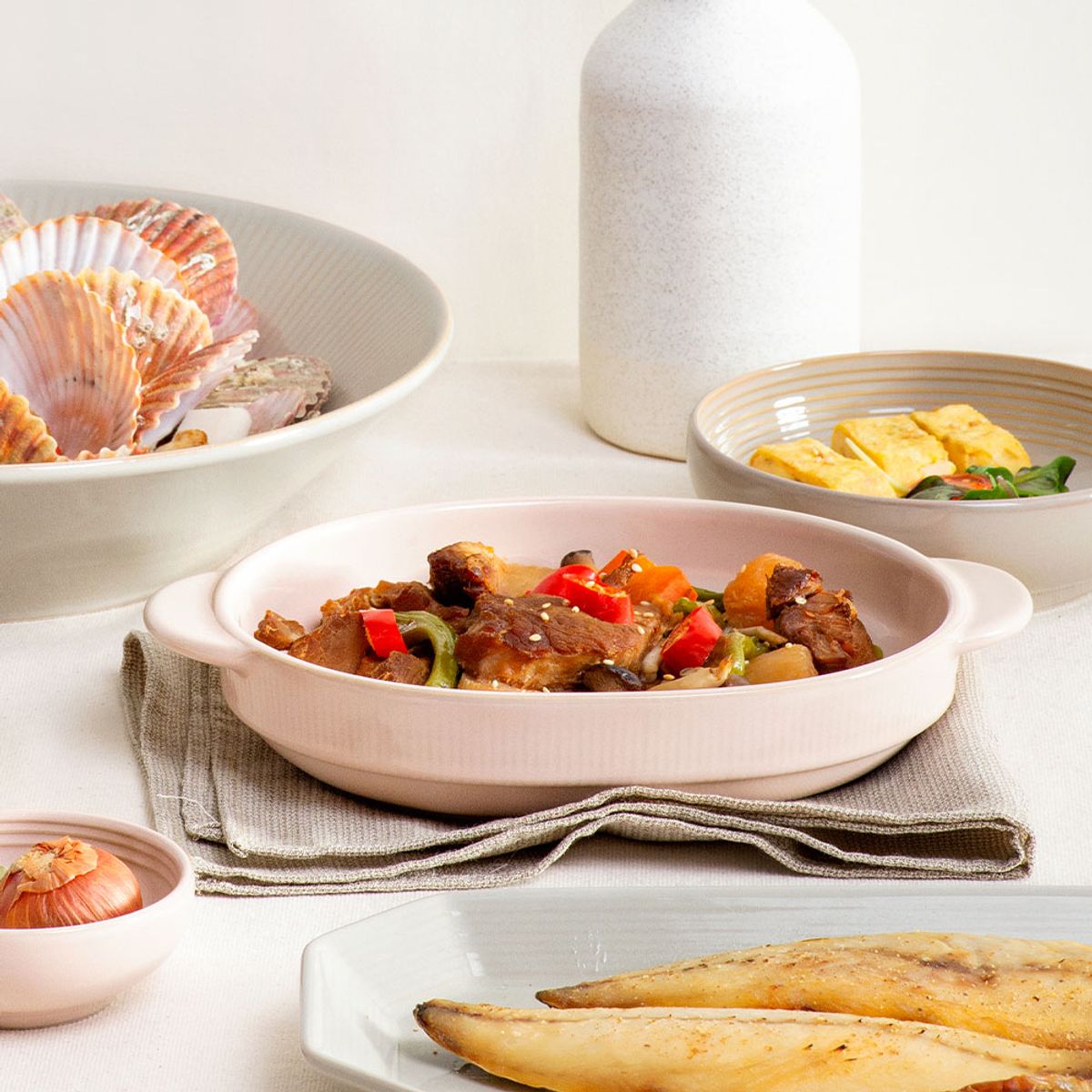 국내생산, 윤도자기 다인 타원 손잡이볼 도자기 그릇 그라탕기