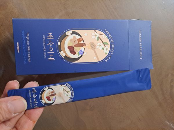 배숙 진하고 맛있네요 콧물이랑 같이 목이 근질근질 아픈 감기기운이 있어서 1일 1포씩 먹고 있는데 너무 맛있어서 한 포로 참기가 힘들어요ㅠㅠ 한입 쭉 빨면 끝나는.. 반 잔 정도 마시고 싶네용 몸에 좋은 재료 들어갔다하니 누가 저같은 기관지 약한 사람한테 3박스 쯤 선물해줬음 좋겠어요