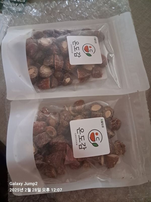 대추야자라 하여 외국의 달고 큰대추인 줄 알았는데 생각보다 작네요 그래도 먹기 딱 좋아요 덜 달고 쫀득한 맛이 견과류 넣은 곳감 먹는 기분도 들어요