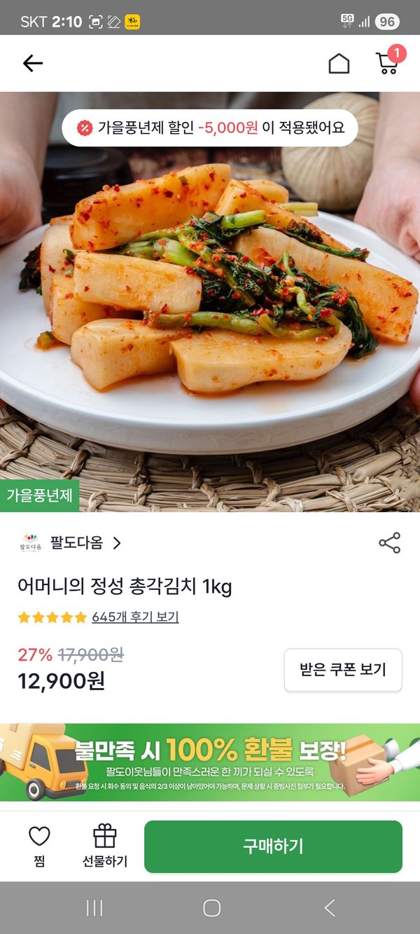 평소 팔도다움 김치들을 시켰을때 대체적으로 만족했었는데 이번엔 쫌 실망스럽네요 무가 물러 아삭하지도않구 고추가루조 적게 써서 허연게 먹음직스럽지않네요.신경써주심감사하겠습니다