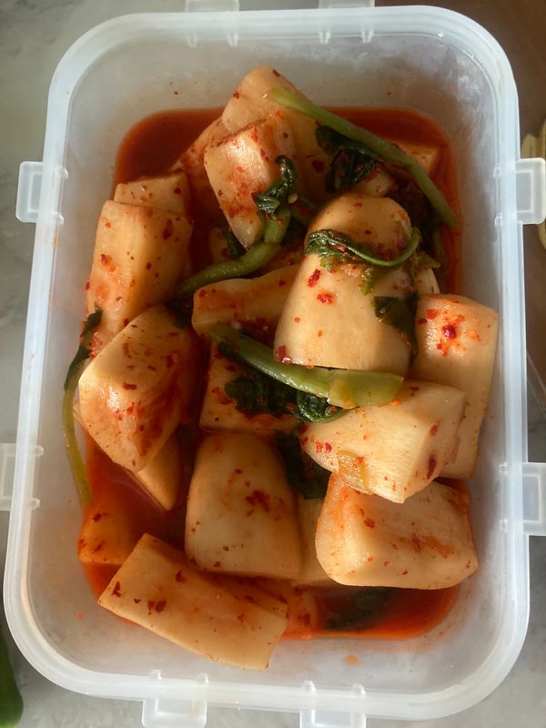 집을 비워서 배송 이틀째에 넣어서인지 좀 익었네요. 익어야 더 맛이 있지만 지금 무가 그런건지 무르게 익었어요. 간은 잘맞고 맛있어요~