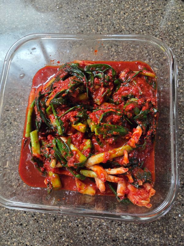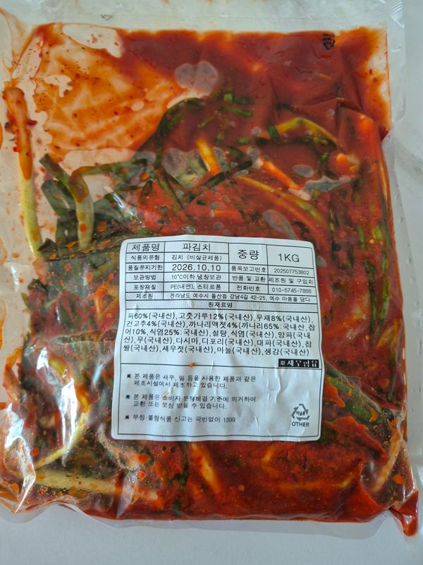 파김치가 대가리가 굵은건 그닥좋아하지 않았는데 이번김치는 아주 맛있어요 적당히 익으니 더욱 감칠맛이 좀 헤픈게 아쉽네요