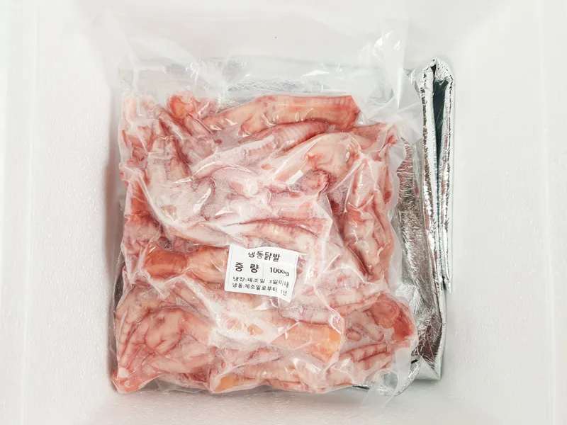 손질한 닭발을 즉시 냉동하여 더 신선함이 오래 갈 수 있도록 준비했어요. 국내산 닭을 사용한 만큼 더 싱싱한 닭발을 만나볼 수 있게 됐죠. 뛰어난 품질의 닭발만을 엄선하여 담았습니다.