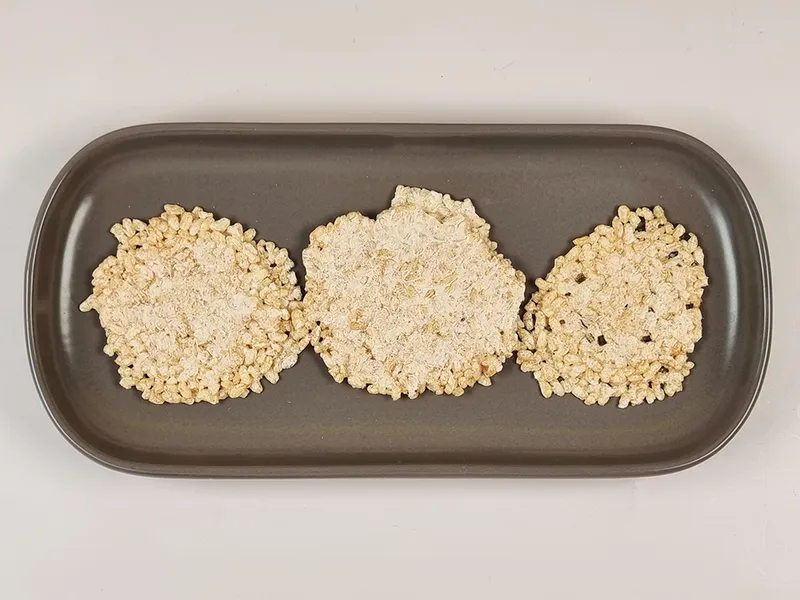전북 부안에서 재배한 햅현미를 엄선해 직접 도정 및 세미합니다. 갓지은 밥을 동그란 모양으로 성형해 1.5mm의 동일한 두께로 압축하고, 시간을 들여 하나하나 구워냅니다. 만들어진 누룽지를 식혀서 포장하는 마지막 과정까지 모두 직접 하고 있습니다.