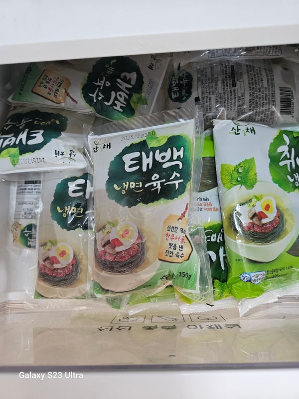 취나물향기가 좀 약해서 비빔면에는 잘못느끼겠어요.물냉도 먹고면씹을때 은은하게 어울리네요.맛있게먹었어요