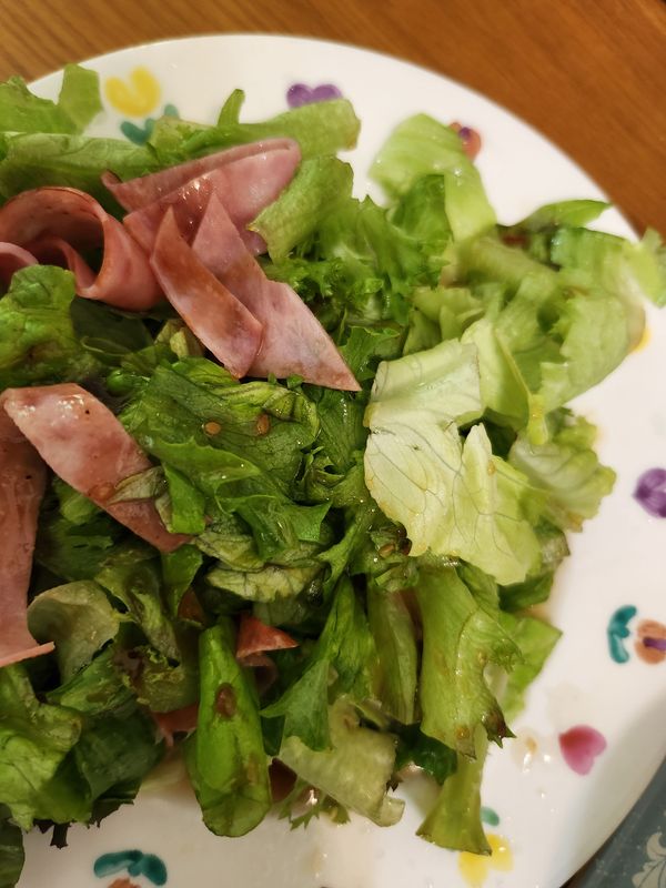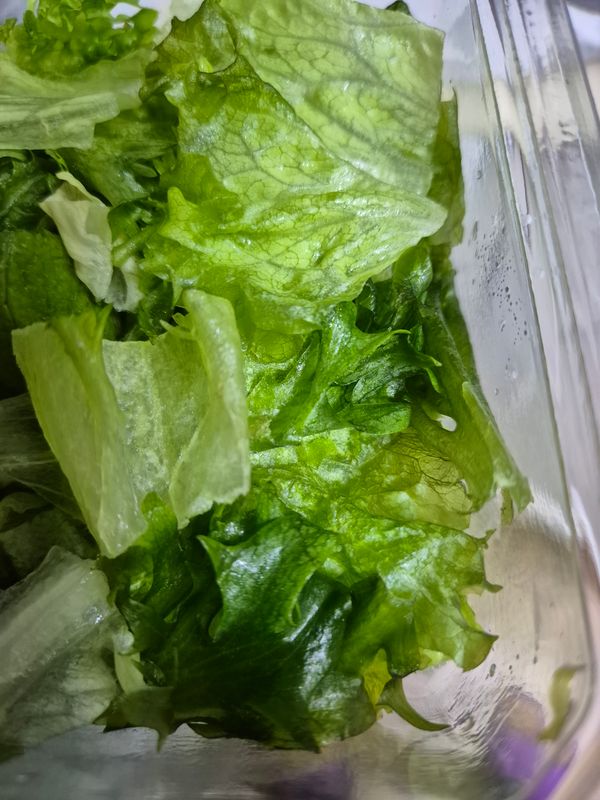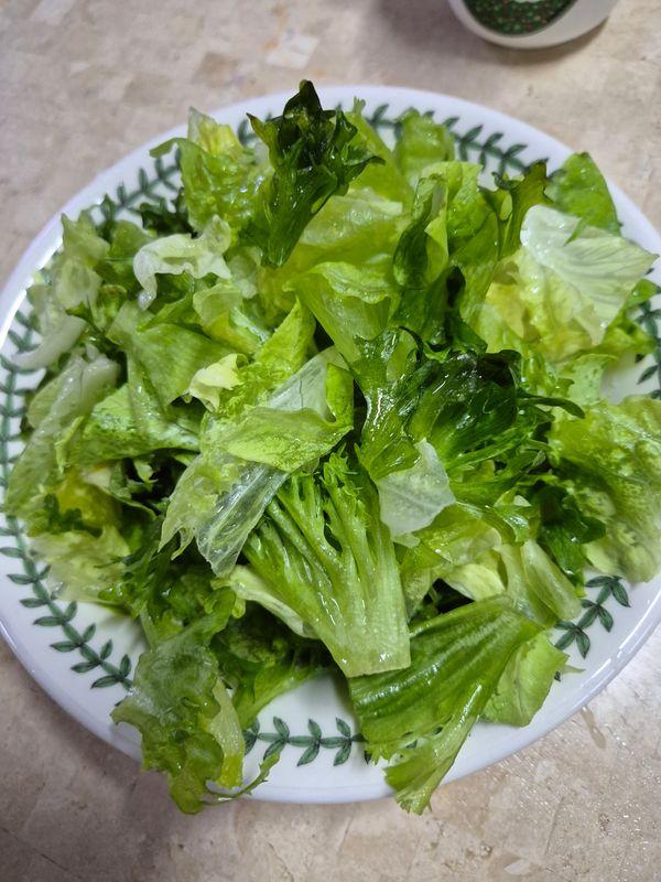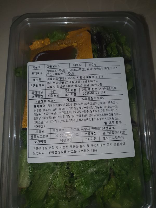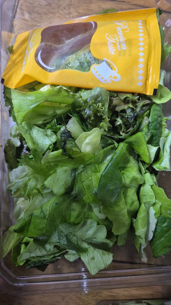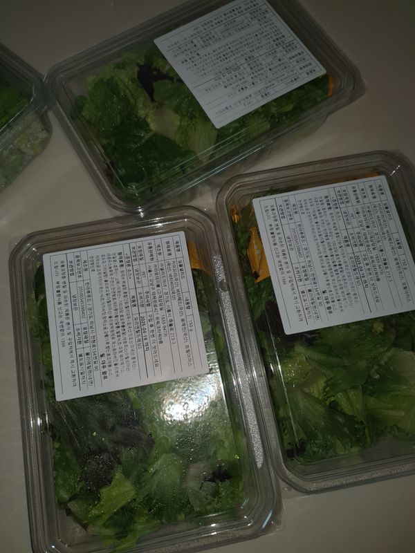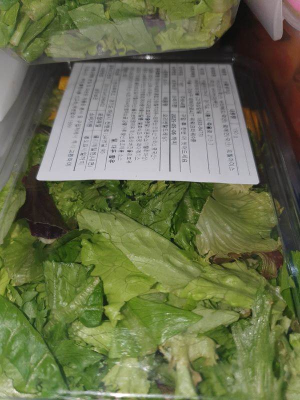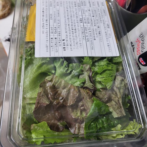 날씨가 추워서 인지 샐러드가 얼었어요.