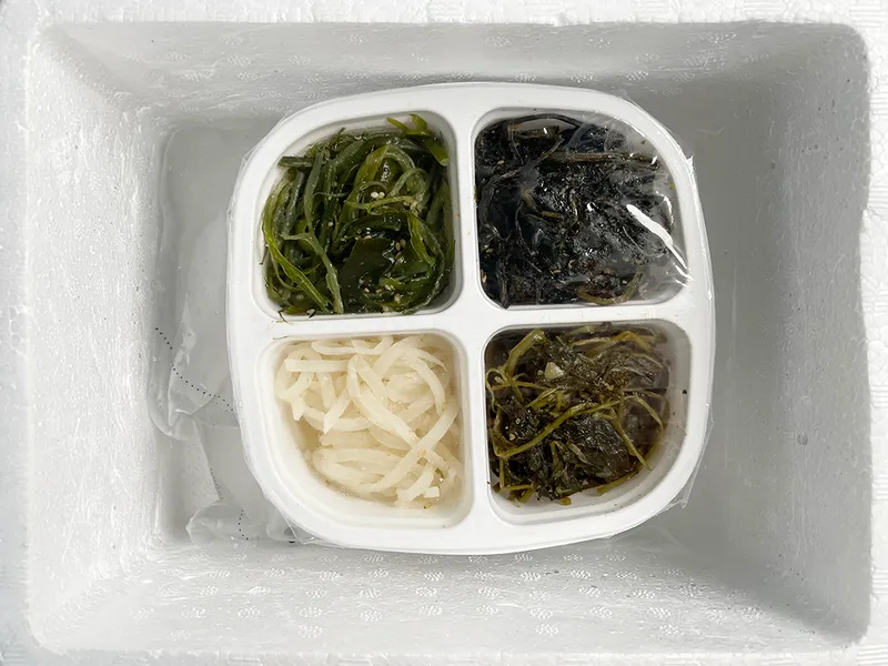 미역줄기볶음의 핵심은 뭐니뭐니해도 비리지 않고 신선한 미역이죠! 물에 담갔을 때 광택과 윤기가 도는 품질 좋은 미역만 사용하기 때문에 풍부한 바다향과 오독오독한 식감이 끝내줍니다. 20년 경력에서 얻은 노하우로 소금기와 비린내를 확실히 제거해 짜지 않고 건강합니다.