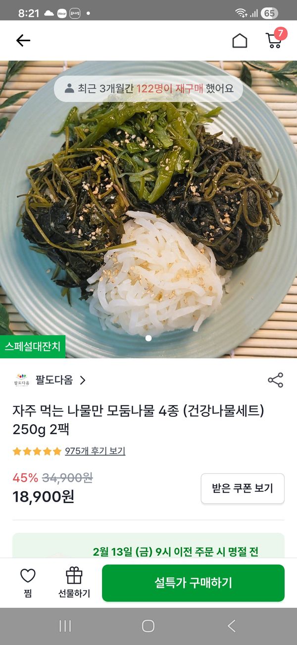 간도 적당하고 제입맛에는 딱입니다 나물 요리 귀찮을때 또구매하겠습니다