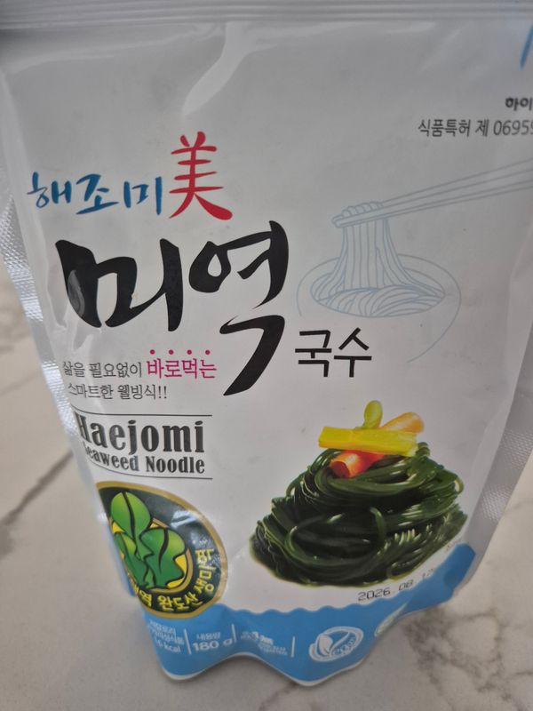 때아니게 여름된다고 다이엇을 한다는 녀석 때문에 미친척 함 미역국수를 시켜보았는데요?? 햐~~ 이거 열량 없고 양배추 얇게 썰어서 초고추장에 비벼봤더니 고유 미역 냄새도 안나고 넘 맛있게 잘 먹었습니다. 재구매의사 있습니다. 다만, 미역냄새를 없애려면 삶은 물에 넣다빼도 고유 냄새가 사라진답니다.