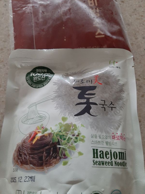 때아니게 여름된다고 다이엇을 한다는 녀석 때문에 미친척 함 미역국수를 시켜보았는데요?? 햐~~ 이거 열량 없고 양배추 얇게 썰어서 초고추장에 비벼봤더니 고유 미역 냄새도 안나고 넘 맛있게 잘 먹었습니다. 재구매의사 있습니다. 다만, 미역냄새를 없애려면 삶은 물에 넣다빼도 고유 냄새가 사라진답니다.