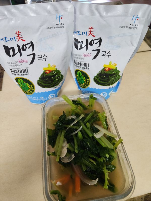 때아니게 여름된다고 다이엇을 한다는 녀석 때문에 미친척 함 미역국수를 시켜보았는데요?? 햐~~ 이거 열량 없고 양배추 얇게 썰어서 초고추장에 비벼봤더니 고유 미역 냄새도 안나고 넘 맛있게 잘 먹었습니다. 재구매의사 있습니다. 다만, 미역냄새를 없애려면 삶은 물에 넣다빼도 고유 냄새가 사라진답니다.