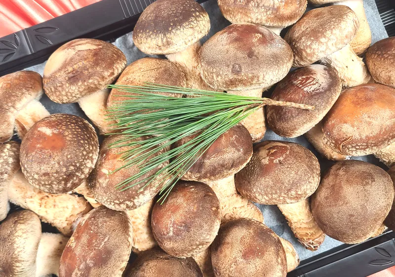 송이버섯과 표고버섯의 교배종인 아침뜰 송화버섯은 송이의 향긋한 향과 표고의 우아한 맛을 동시에 느낄 수 있어요. 갓은 표고버섯의 형태를 가지고 있고 대는 송이버섯의 특징을 지니고 있어서, 일반 버섯과는 다른 차원의 맛과 식감을 자랑해요. 마치 고기를 씹는 듯한 쫄깃한 식감이 특징이라 다양한 요리에서 그 진가를 드러낼 수 있어요.