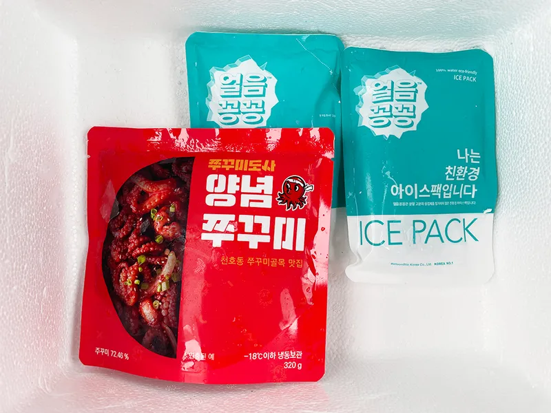 아이스박스에 아이스팩을 동봉하여 보내드립니다.
