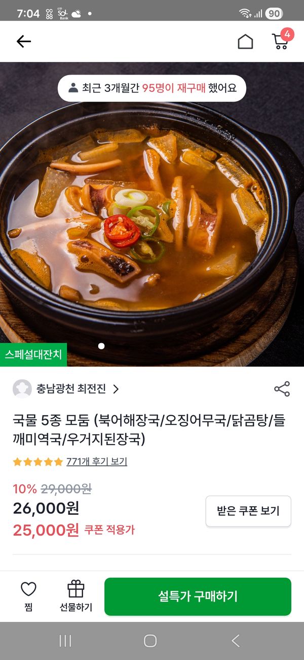 항상 주기적으로 주문합니다 근데ᆢ아쉬운건 5종말고 좋은하는 것만 살수있었으면 좋겠어요 오징어 무국이랑 된장국 진짜 맛있거든요 두개만 따로 팔아주세요