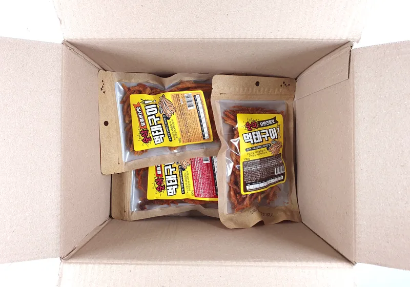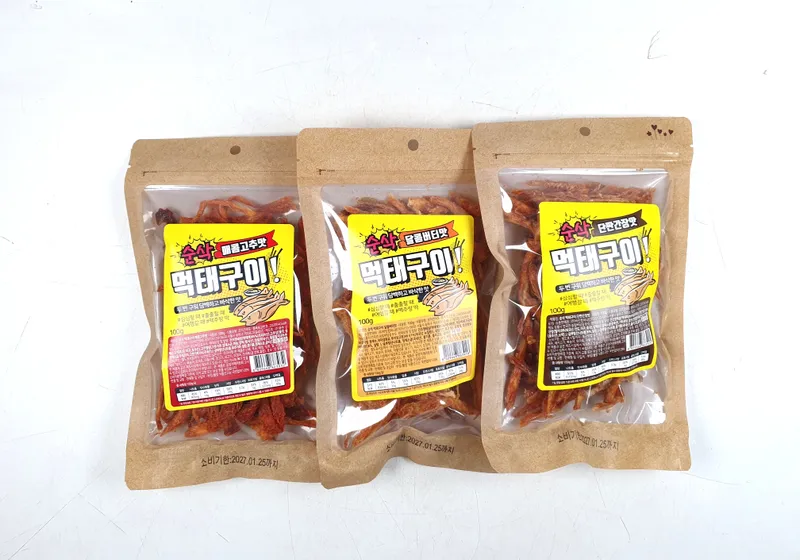 먹태의 좋은 부분만 정성껏 발라내 사용해요. 두 번의 구우 과정을 거쳐 수분을 제거하고 바삭함을 극대화했어요. 100g의 적당한 용량으로 신선함을 유지하면서 보관할 수 있어요.