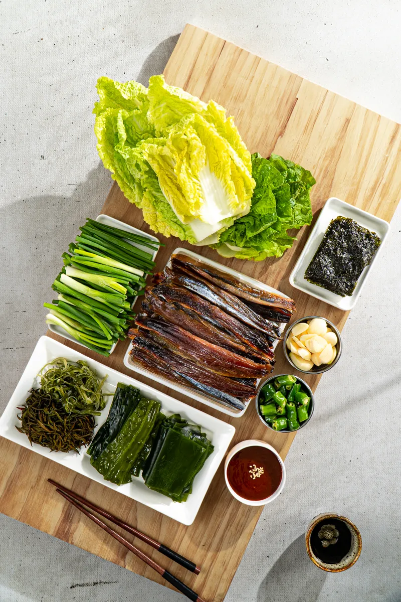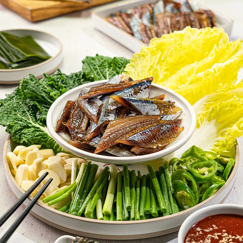 상추, 배추 등에 마늘, 쪽파, 고추 등을 곁들여 드시면 깔끔하게 드실 수 있어요. 다시마, 김, 해초 등과 함께 드시면 고소한 과메기의 맛이 더욱 풍성해진답니다.