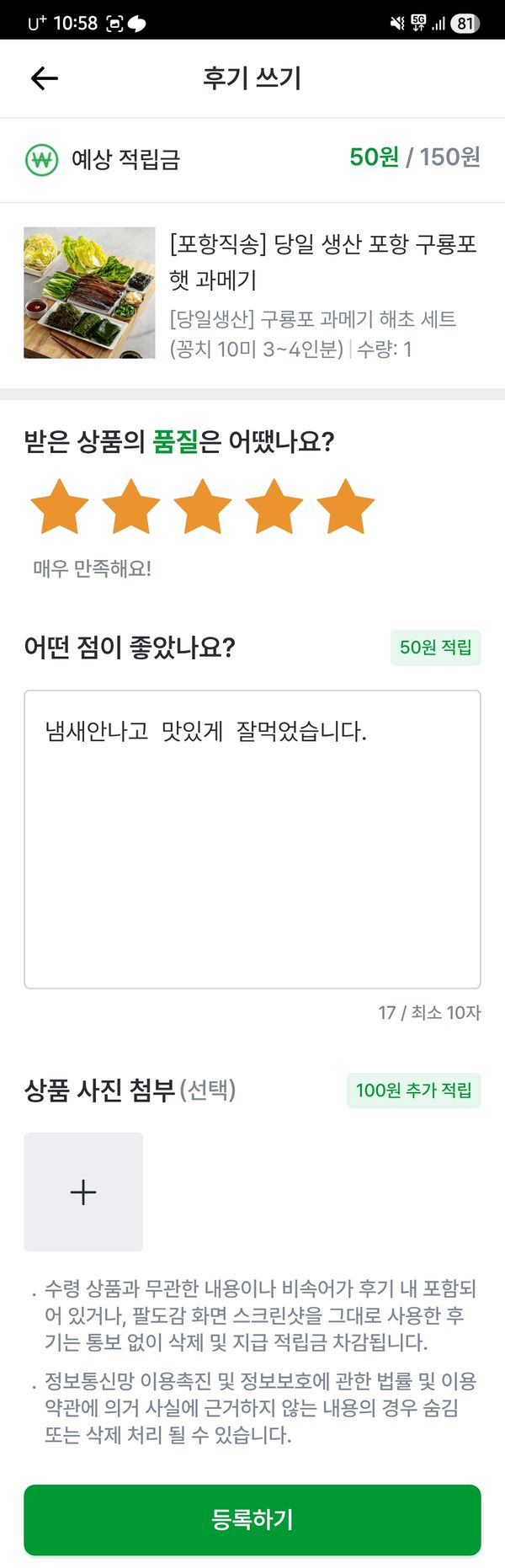 해초중 구멍 송송난 미역이 사진에는 있는것 같은데 없어 좀 아쉬운것 같았습니다