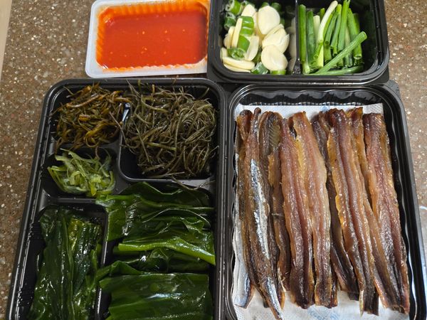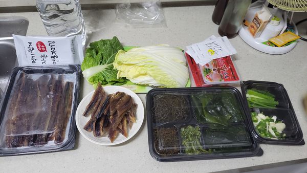 사진은 다음날 2차로 먹는거 찍은거라 양이 적은데 처음 받았을 때 과메기 양이 많아서 좋았어요!! 채소는 양이 보통정도였어용ㅎㅎ 다시마랑 곰피 이런건 좀 짜서 물에 담가뒀다가 드세요 ㅎㅎ