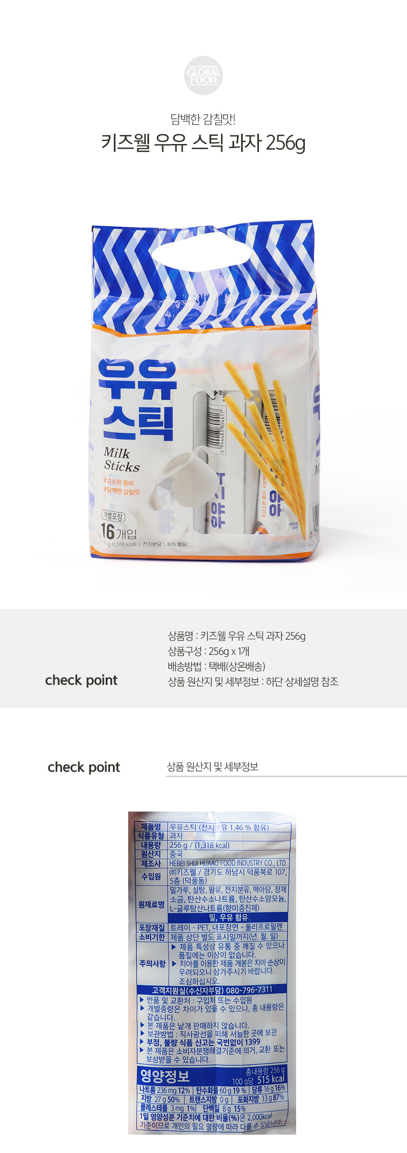 키즈웰 우유 스틱 과자 256g / 분유맛 과자 / 노브랜드