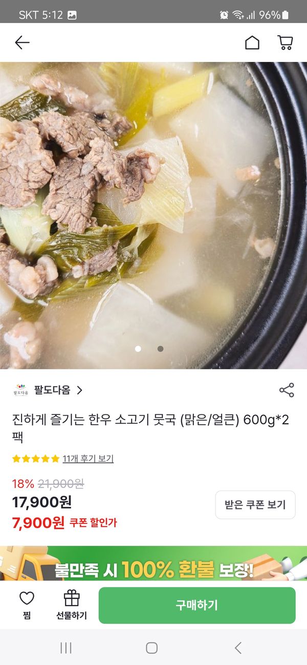 옵션: 맑은 한우소고기뭇국 600g*2팩