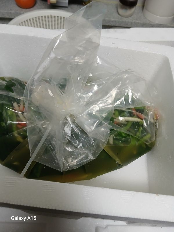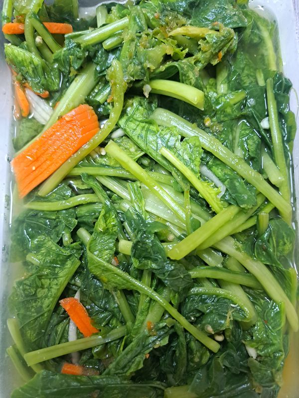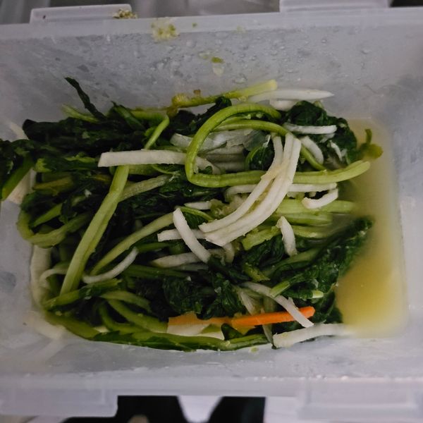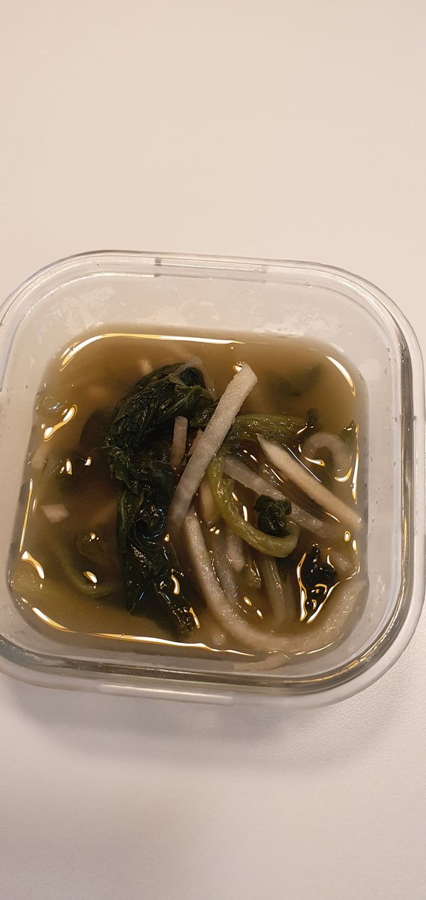 맑은 열무짜박이김치 짜서 물을 부어서 간을 맞춰 익히니 새콤달콤 맛있어요.