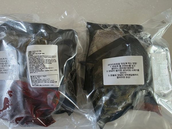 완전 요리 식품이 아니고 양념 따로 코다리 따로네요 다행히 녹지는 않았어요 시레기 더 넣고 끓여 봐야겠어요 아직 먹어 보기전입니다 맛있기를....