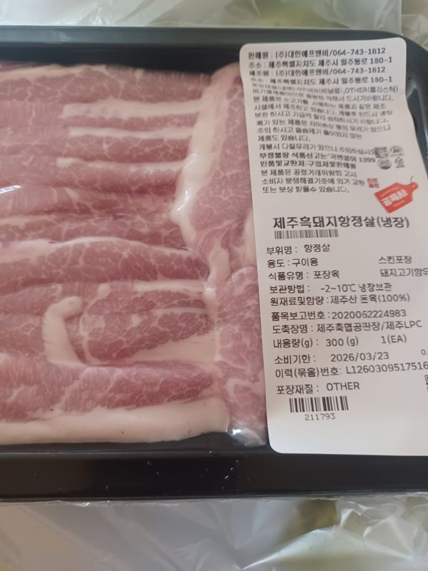 프리미엄 제주 흑돼지 항정살