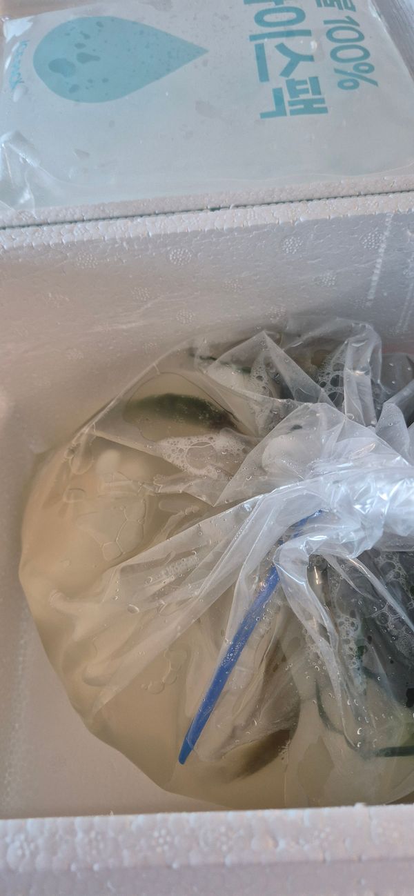 저희 입맛에 딱 맞게 익어서 바로 먹기좋아요. 맛있습니다.팩 대신 작은 물을 얼려서 보내 주셔서 감사합니다.환경에도 도움이 될듯하여 마음이 흐뭇합니다. 동침이 묶은 끈이 거의 다 빠져서 왔어요.다행이 국물이 흐르지 않아서 다행입니다.