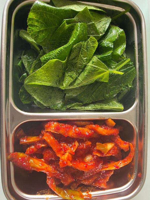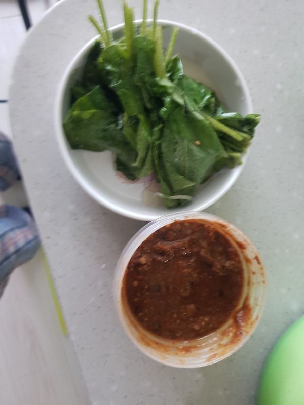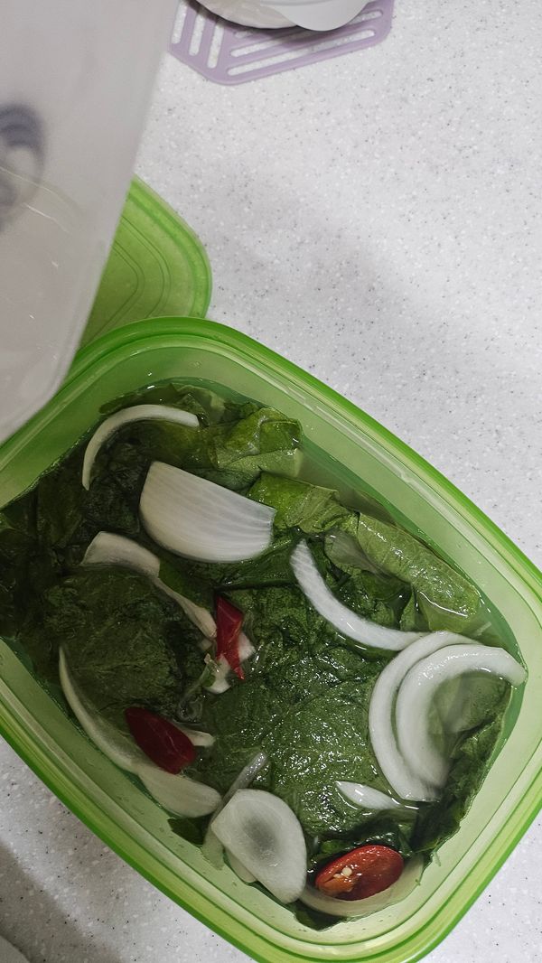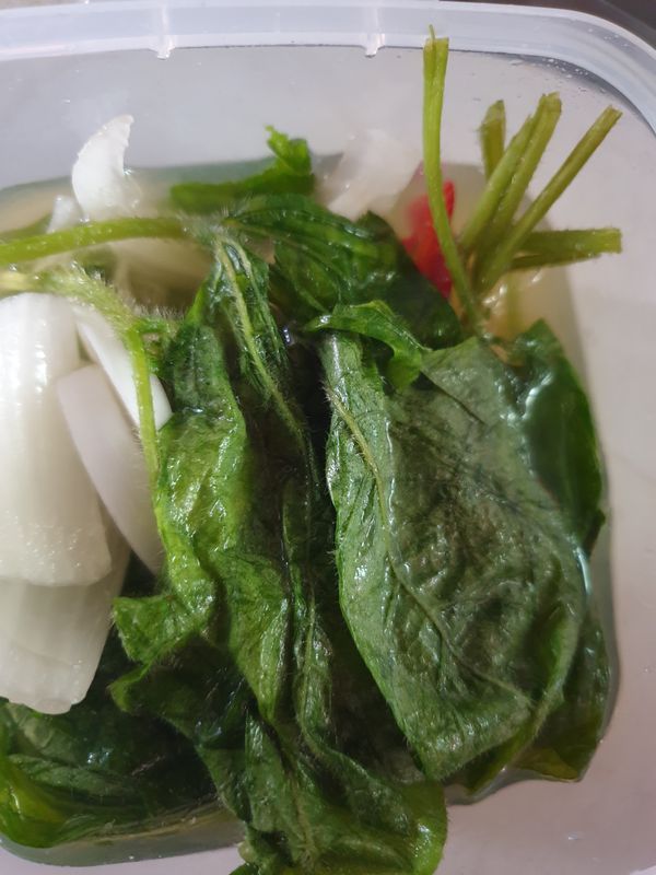 싱싱하니 어린잎이네요 살짝 밖에서 익혀서 먹었어요..국물이 좀 내가 알던 버전이라 다르긴해도 내손안가고 맛나게 서울서 요런거 배달 시켜 먹을수 있는것만도 행복여요