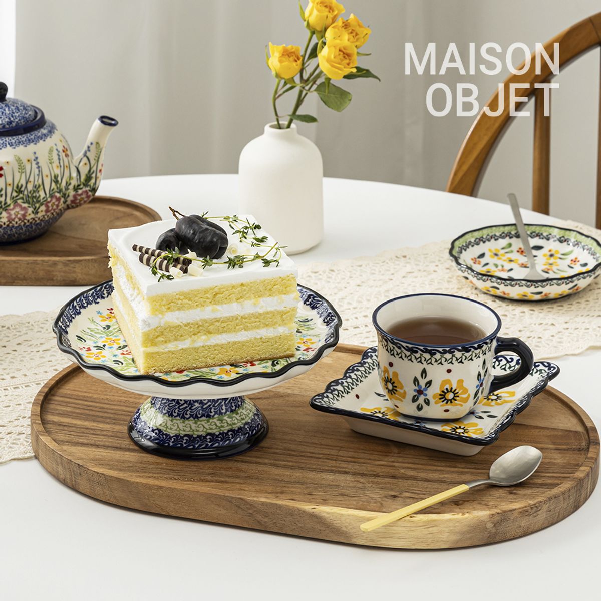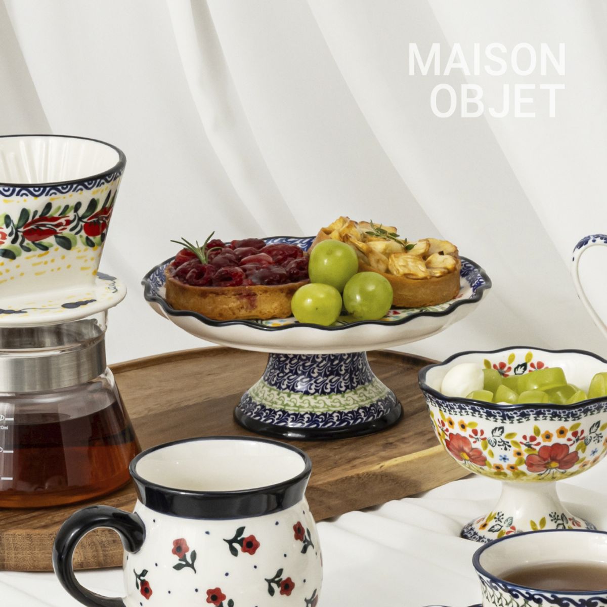 프라카 케익스텐드 폴란드풍 도자기 그릇