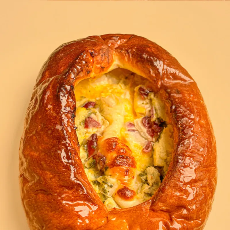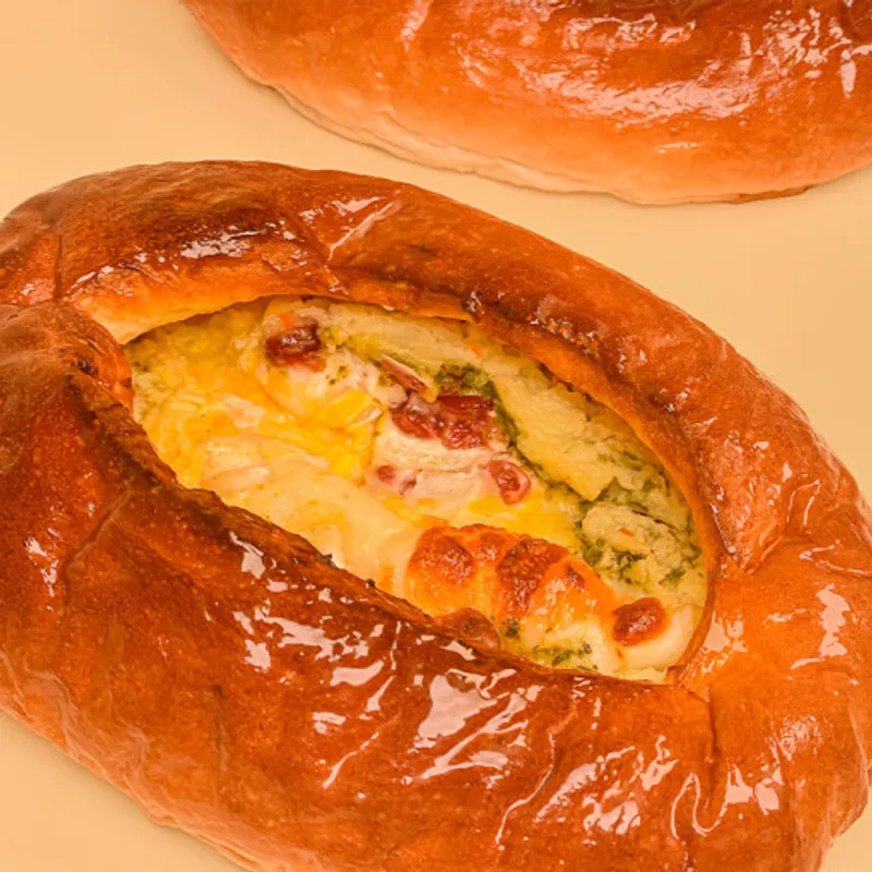 향긋한 바질페스토부터, 달큰한 양파, 그리고 감자샐러드까지! 다채로운 재료들이 만나 깊은 풍미를 더하는 바질 양파빵입니다.