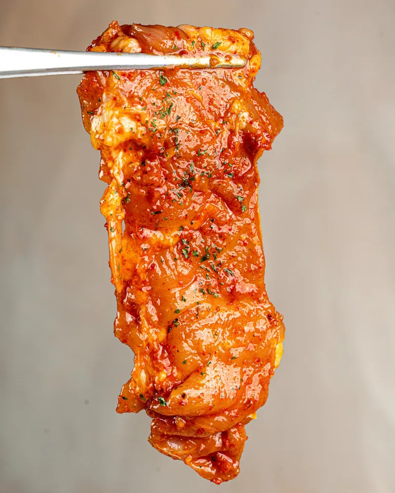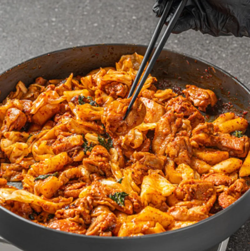 엄선한 국내산 닭다리살만을 사용하여 만든 믿음직한 춘천닭갈비입니다. 국산 고춧가루와 직접 기른 매실을 사용하여 더욱 깊은 감칠맛이 좋은 비법 양념장을 만들었죠. 꼼꼼히 선별한 재료인 만큼 더 특별하고 뛰어난 춘천닭갈비 맛을 느껴보세요!