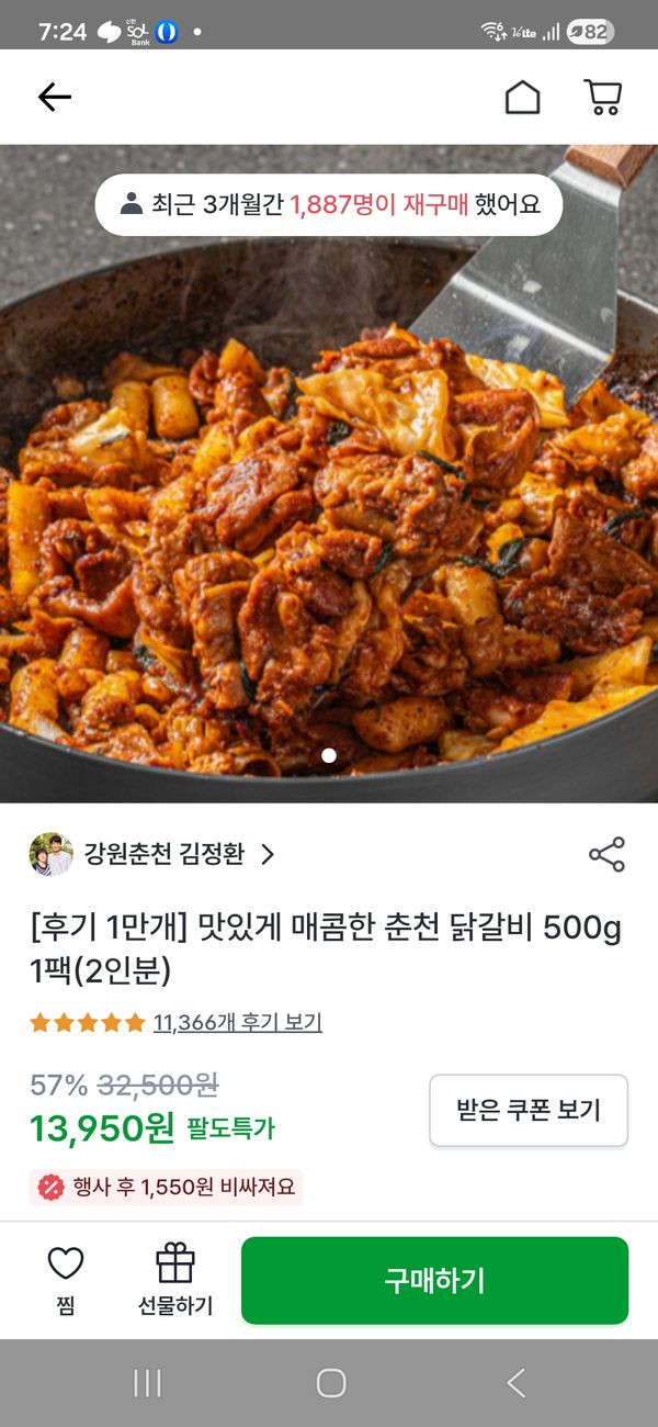 궁금해서 시켜본 닭갈비 대만족입니다. 온가족이 다 맛있다고 합니다. 조만간 재구매 예정입니다.