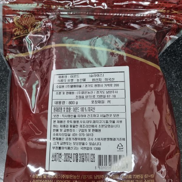 슬라이스아몬드 소비기한 넉넉하고,맛있게 먹겠습니다