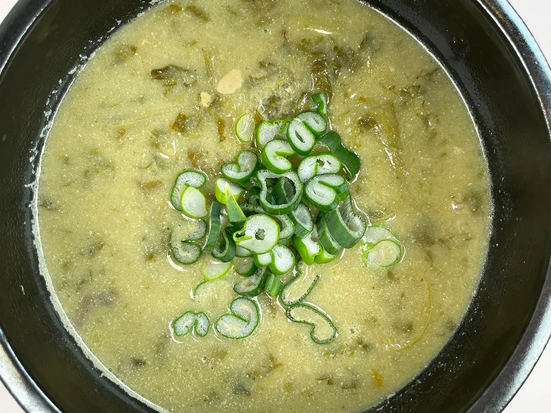 된장 베이스 사골 국물에 들깨를 넣어 구수하고 깊은 맛을 냈습니다. 속을 뜨끈하게 데워줘 든든한 한 끼 식사가 될 거예요.