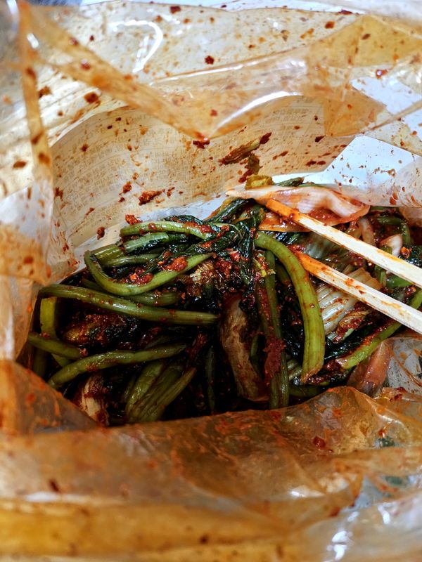 시장꺼보다 정말 맛있어요. 근데 이번엔 조금 시켜서 그런지 총각무보다 잎파리가 더 많은 비율로 와서 좀 슬펐어요. (사진찍는걸 또 깜빡)