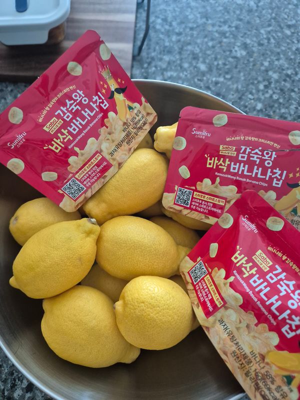 레몬이 상태가 좋고 같이보내주신 바나나칩 너무 감사합니다 생각지도 않았는데 포장을 여는순간 기분이 너무좋더라고요 레몬 사이즈가 크지 않아서 요리할때 쓰기가 좋습니다 다음에 재구매 의사 있습니다