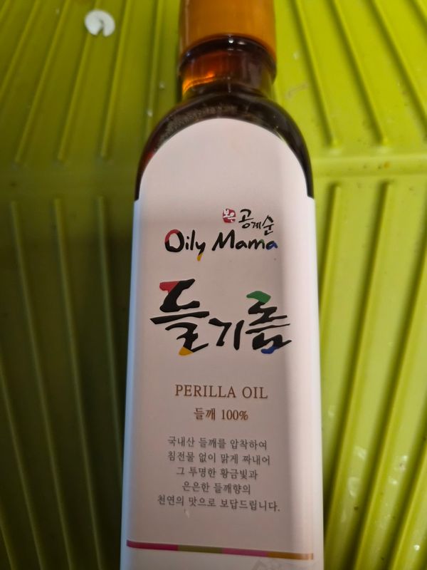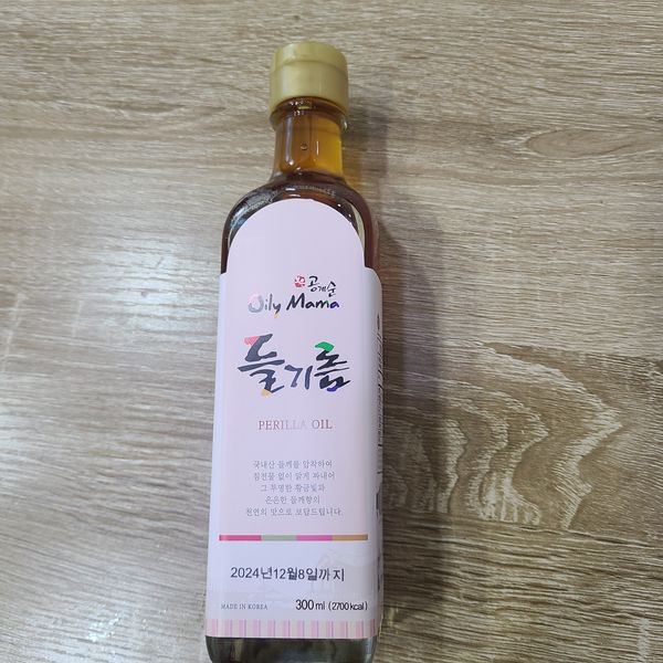 아침에들기름먹기시작 지난번꺼먹어보고 좋아서 300미리또주문인데예 이번꺼는살짝 쓴맛이나네요 많이볶으셨는지예 180미리는 고숨만했거든요