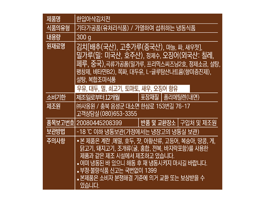 [마녀바스켓] 명절에 빠질 수 없는 사옹원 한입 아삭 김치전 300g x3팩*
