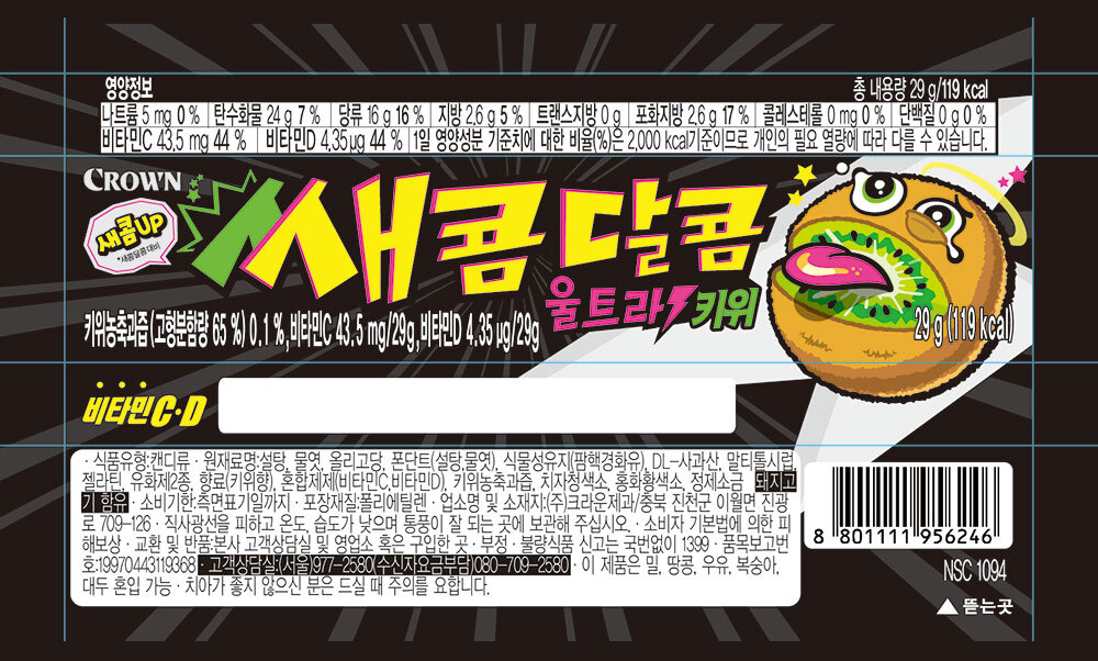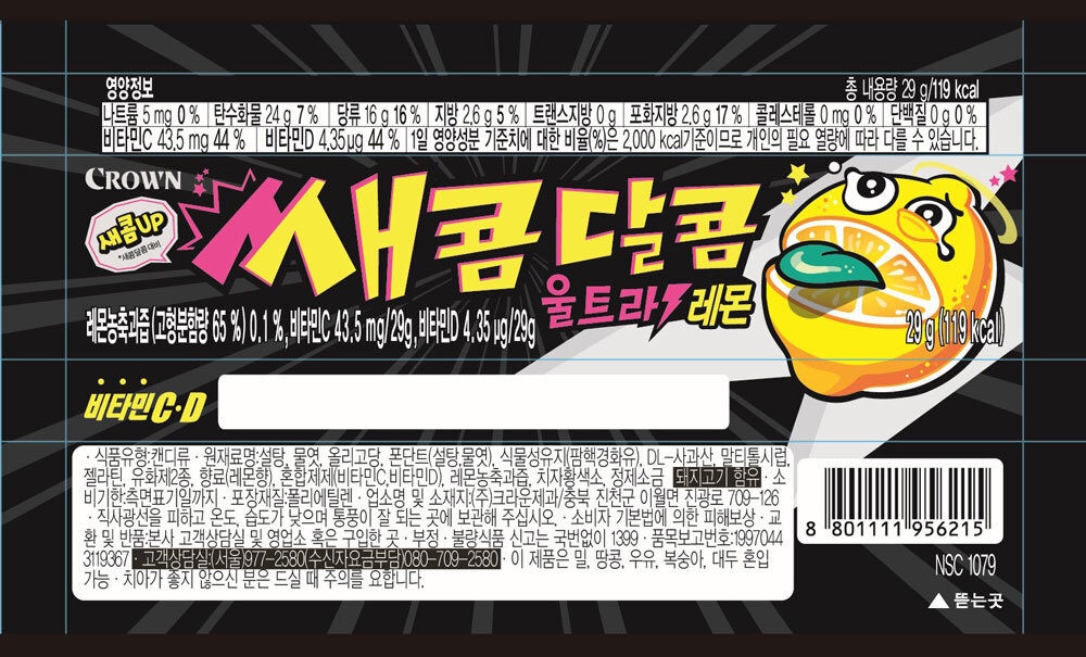 [G] 크라운 새콤달콤 스틱 6종 30개입(딸기5+포도5+복숭아5+울트라레몬5+울트라키위5+블루베리소다5)_미판매